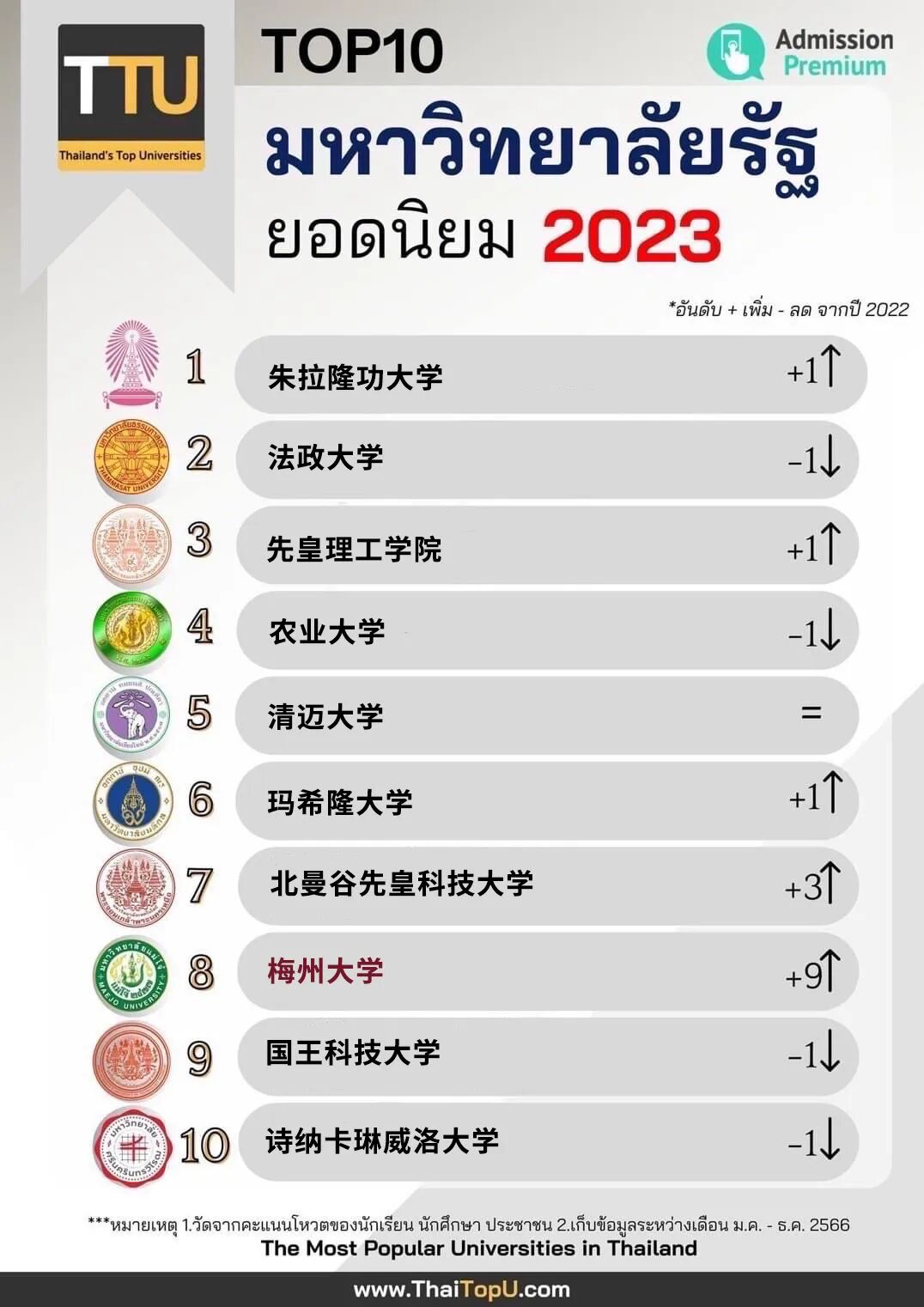 ![]() NEWS 据泰国权威高等教育资讯网站 最新统计,梅州进入2023年泰国最受欢迎十所公立大学行列! ![]() “ 中文版榜单 ![]() 成立于1934年,作为泰国教育部下属的学术机构和颇具影响力的公立自治型大学,梅州大学一直致力于培养和发展学生的技术能力,使他们在文化和学术上都有所成就,从而能够对国家的未来做出自己的贡献。 此次排名连升9位,强势进入TOP10,可谓是实至名归。梅州大学官方媒体也在第一时间宣布了这一好消息! ![]() ![]() ![]() 往期推荐 通知‖梅州大学2024年6月批次 硕博项目申请时间安排 答疑‖梅州大学相当于国内什么大学 学讯‖泰国梅州大学2024年硕博招生简章 视点‖我眼中的梅州大学 ![]() 请关注云河马教育公众号、抖音短视频、小红书、新浪微博,第一时间获取更多留学干货! ![]() 专业服务团队 ![]() ![]() ![]() ![]() ![]() ![]() ![]() ![]() ![]() ![]() ![]() ![]() |